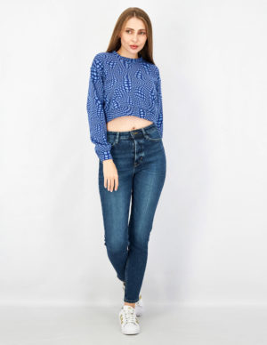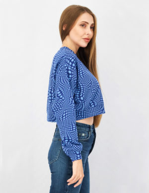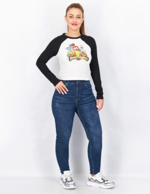XXS MУкорочений лонгслів з яскравим принтом, круглим вирізом горловини. Із бавовняного трикотажу, рукав реглан