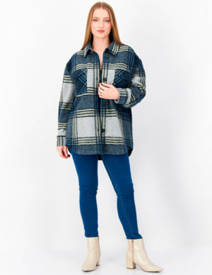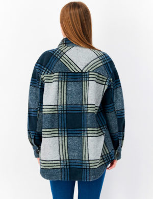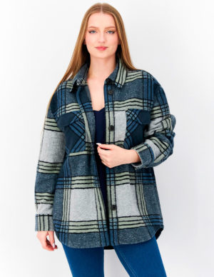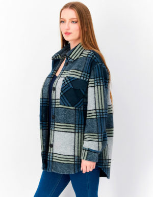 MКуртка в клітинку із сорочковим коміром і довгими рукавами. Застібається на ґудзики спереду. Дві накладні кишені з клапаном на грудях