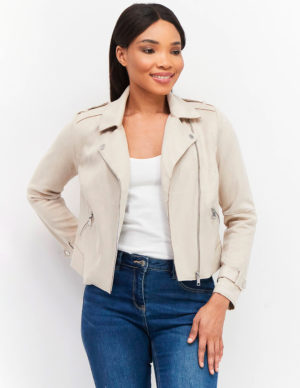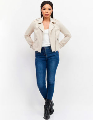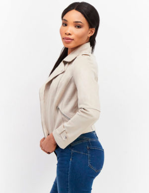 XLУкорочена куртка з прямокутними лацканами, дві бічні кишені на блискавці. Довгі рукава на кнопках, застібається на блискавку спереду