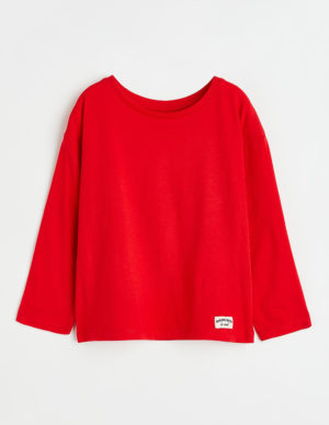 92 смЛонгслів з круглим вирізом горловини із м’якого бавовняного трикотажу з нашивкою, спущена лінія плечового шва
