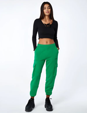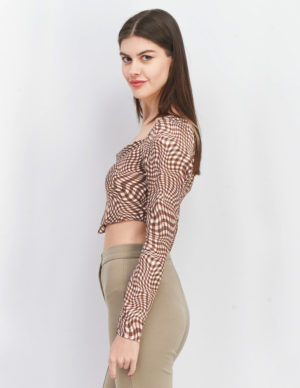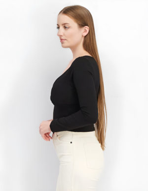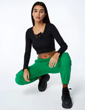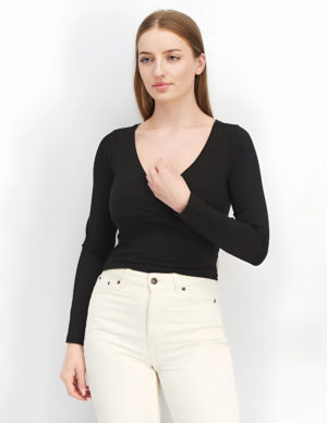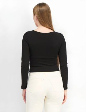 SУкорочений лонгслів із бавовняного трикотажу з довгими рукавами. V-подібний виріз горловини