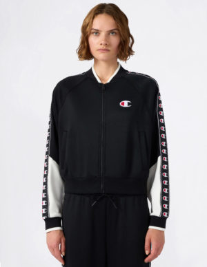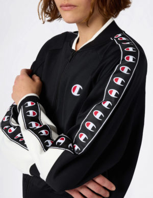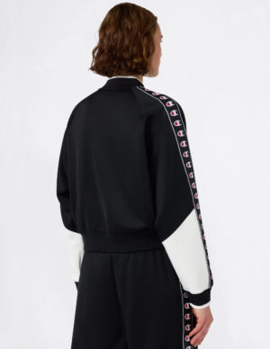 MНатхненний спортивною формою 90-х, цей светр на блискавці переосмислює класичний спортивний топ з жіночним, стильним відтінком. Виготовлений з матового та блискучого інтерлоку, він має стрічку з логотипом на рукавах, ребристий комір з контрастними смужками та вишитий логотип у формі літери C на грудях. Звичайний крій робить його ідеальним для спортивно-повсякденного або стилізованого одягу