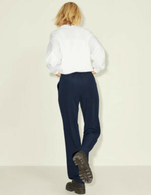 XXSПрямі брюки з високою посадкою талії. Застібаються на блискавку, ґудзик та металеві гачки спереду. Мають прорізні кишені спереду та декоративну кишеню з обшивкою ззаду