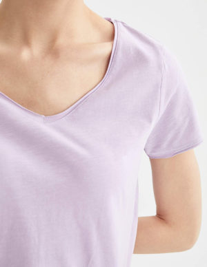 XSФутболка з V-подібним вирізом горловини із бавовняного трикотажу. На горловині та рукавах необроблені краї