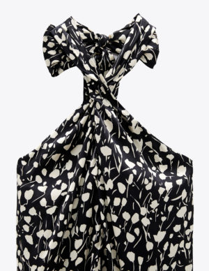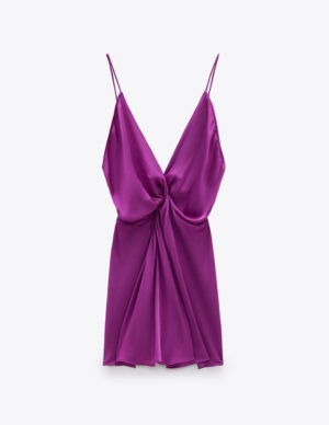 XS S L XLСатинова майка на тонких регульованих бретелях. V-подібний виріз горловини, вузол спереду. Застібається на приховану блискавку ззаду