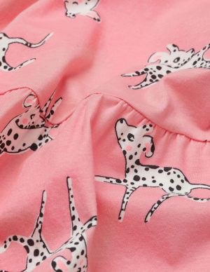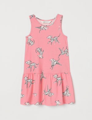 110/116 122/128Сукня без рукавів із бавовняного трикотажу з принтом. Зібрані знизу шви та розкльошена спідниця