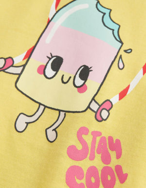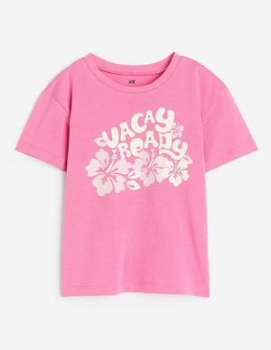 134/140Футболка із бавовняного трикотажу з принтом. Круглий виріз горловини в рубчик, злегка спущені плечі