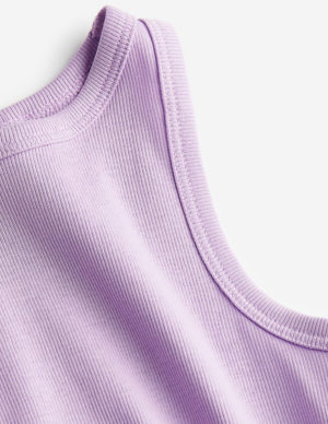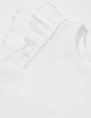 110/116 122/128 134/140Майка із бавовняного трикотажу в рубчик з декоративними воланами, оверлокованими краями по плечових швах