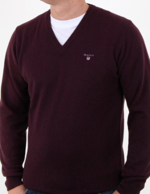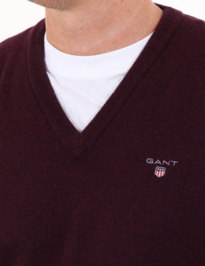 XXLЦей светр, виготовлений із вовни, забезпечує неймовірну м’якість, незамінний на кожен день, його можна надягати поверх сорочок або носити окремо. Виготовлений в структурі простого трикотажу, він має класичний V-подібний виріз, ребристі деталі на горловині, подолі та манжетах і логотип GANT, вишитий на грудях