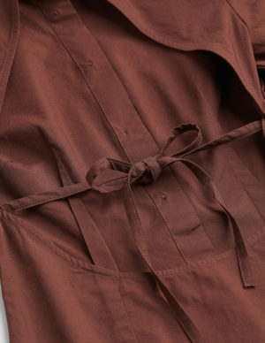 SСорочка по фігурі з бавовняного попліну. Комір, застібка на ґудзики спереду, виріз ззаду з вузькими зав’язками. Довгі рукави з манжетами на ґудзиках