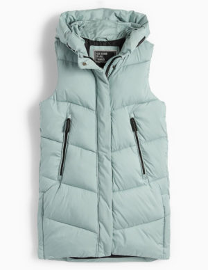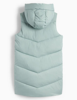 128 см 140 см 158 см 176 смПодовжена утеплена жилетка з капюшоном, спереду застібається на блискавку під прихованою планкою та має дві кишені на блискавці