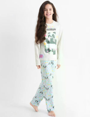 152 см 158 см 164 см 170 смПіжама з м’якого трикотажу німецького бренду C&A в дизайні Minecraft. Верх із заниженими плечима, друкованим принтом та аплікацією по подолу. Низ з візерунком та еластичним поясом