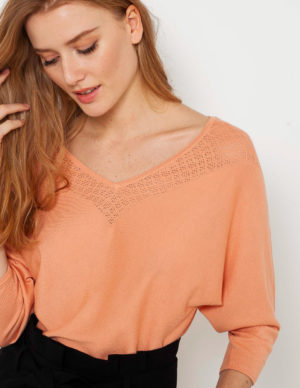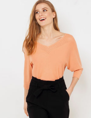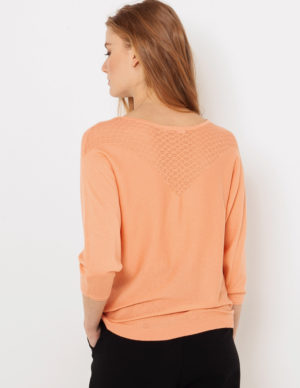 SДжемпер з віскозної тканини, ажурні вставки на плечах та спинці. V-подібний виріз горловини, рукава довжиною 3/4