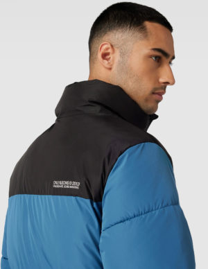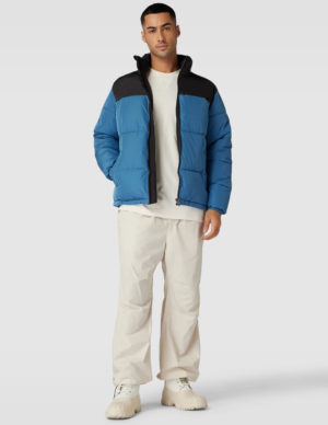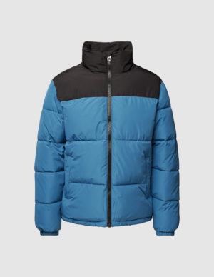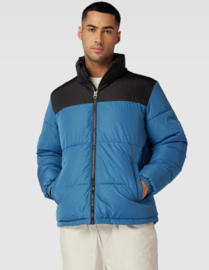 MДвокольорова, утеплена куртка з високим коміром та захистом для підборіддя. Дві бічні кишені та логотип ззаду на спині. Застібається на блискавку. Еластичні манжети на рукавах