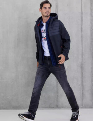 XLКуртка з капюшоном виготовлена з комбінованої тканини, спереду застібається на блискавку та має дві бічні кишені на блискавці