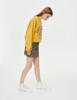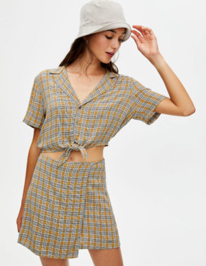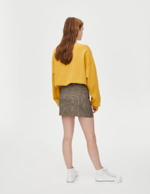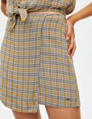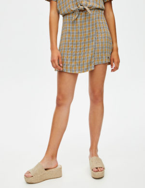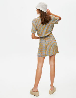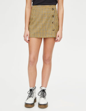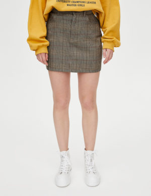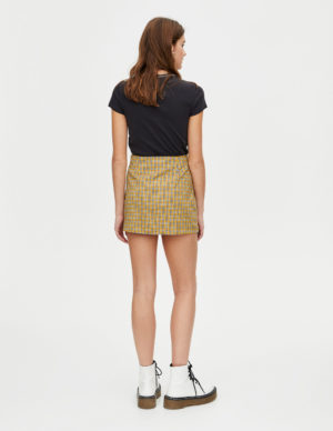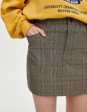 MКоротка спідниця в клітинку з кишенями спереду та ззаду. Застібка на блискавку та ґудзик
