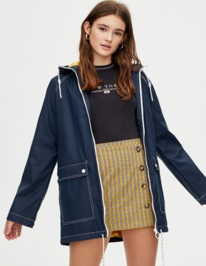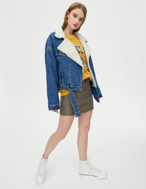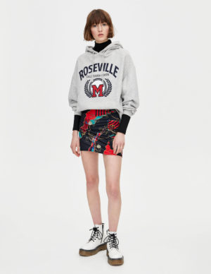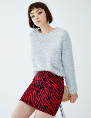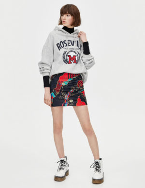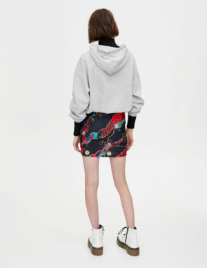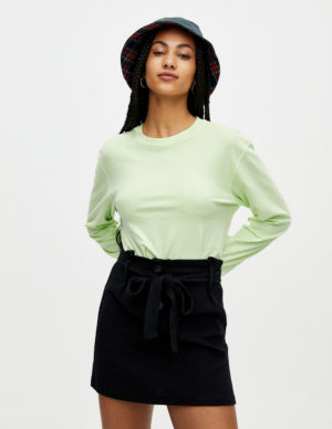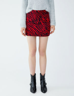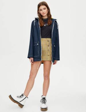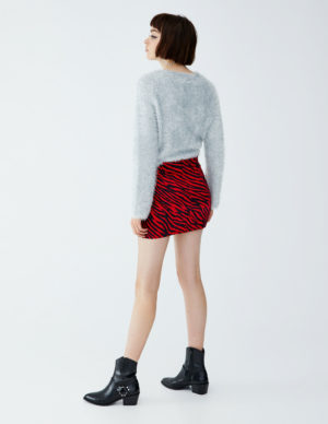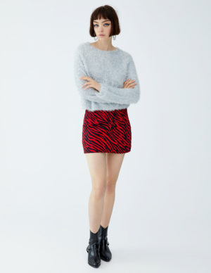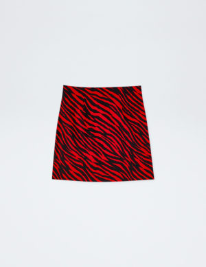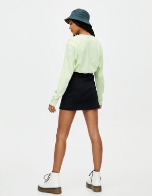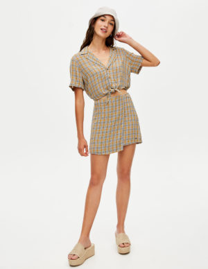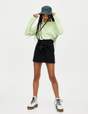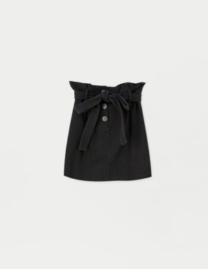 MКоротка спідниця з тканини структурованого переплетення. Завищена талія зі з’ємним ремінцем, застібка на ґудзики спереду