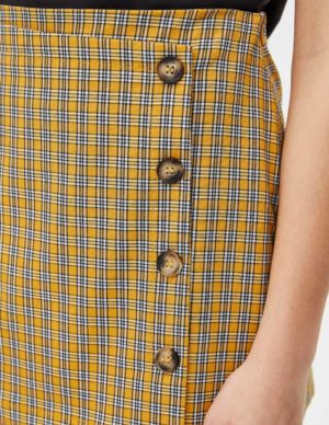 L XLКоротка тканинна спідниця в клітинку. З однієї сторони декорована ґудзиками, прихована бічна блискавка