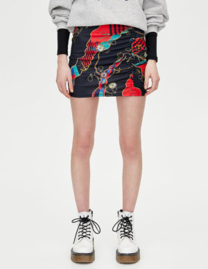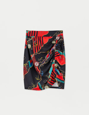 S LКоротка спідниця з еластичного трикотажу. Середня талія, асиметричне драпірування спереду