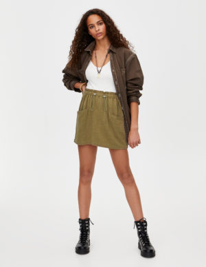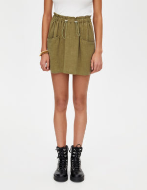 XSКоротка спідниця з суміші віскози та льону з регульованою еластичною талією. Спереду кишені з обох боків