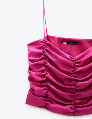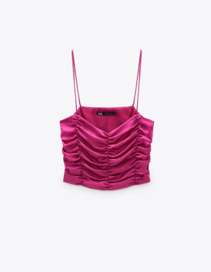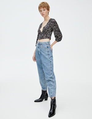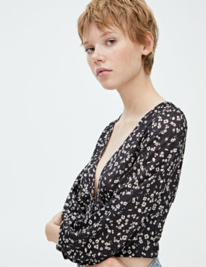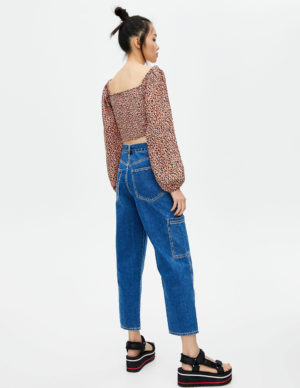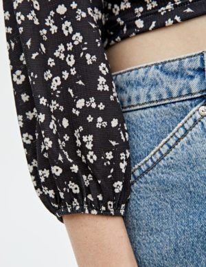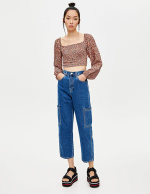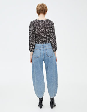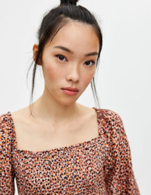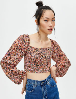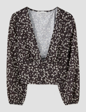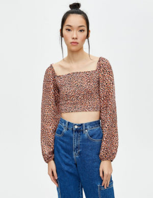 M LБлуза з віскозної тканини. Прямокутний виріз з еластичним краєм, довгі об’ємні рукави з гумкою на манжетах