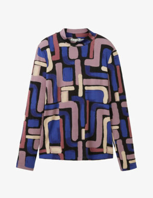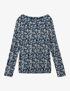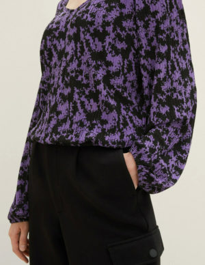 S MБлуза з ромбовидним вирізом горловини з принтом, довгі рукава буфи з еластичними манжетами та еластичний низ