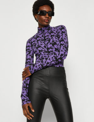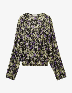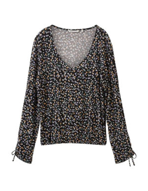 S MБлуза з V-подібним вирізом горловини із віскози в квітковий принт. Довгі рукава з регульованой драпіровкой