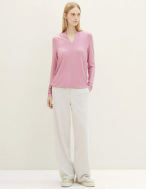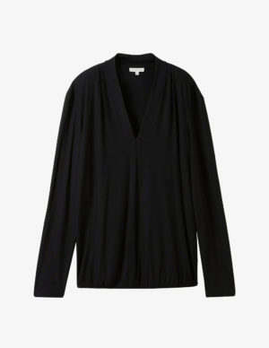 S M L XLЛонгслів з V-подібним вирізом горловини із віскози. Спущена лінія плечового шва, довгі рукава та еластичний низ