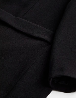 S MКоротке приталене пальто з прямокутними лацканами. Приховані кнопки спереду, непомітні бічні кишені та знімний пояс на талії