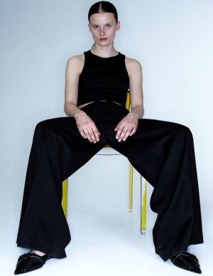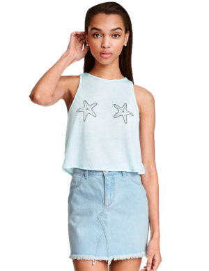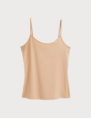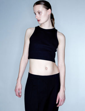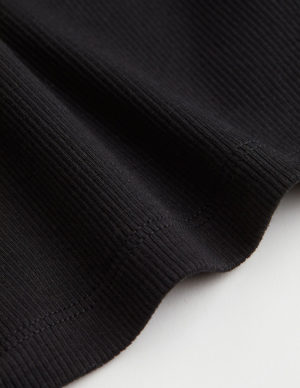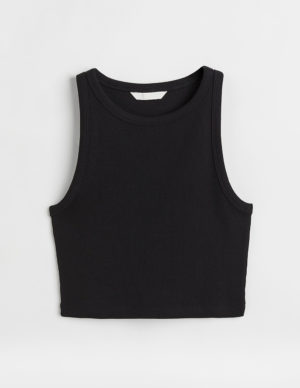 MКоротка майка із бавовняного трикотажу в рубчик. Круглий виріз горловини, вузька обробка навколо шиї та плечей