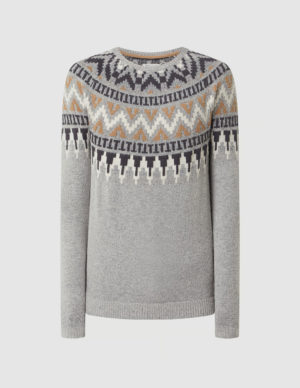 SВ’язаний светр з орнаментом зверху із м’якої пряжі. Круглий виріз горловини, рукави-регланом