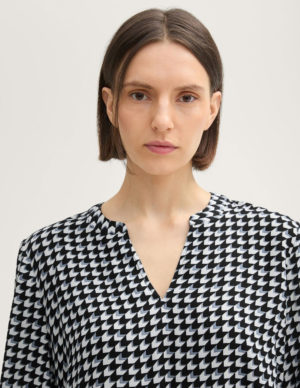 S M L XLБлуза із віскозної тканини в принт. V-подібний виріз горловини, довжина рукавів три чверті