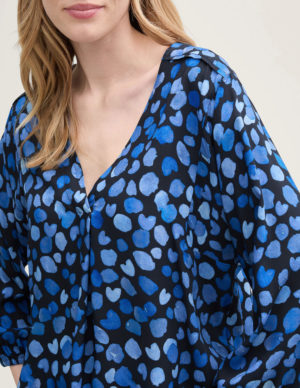 S M L XXLБлуза із віскозної тканини в принт. V-подібний виріз горловини, довжина рукавів три чверті