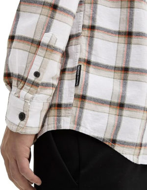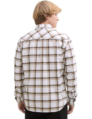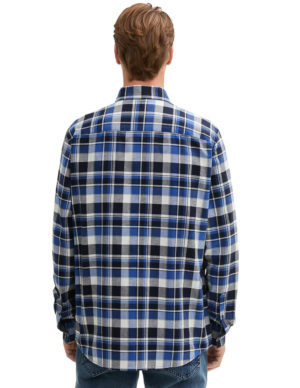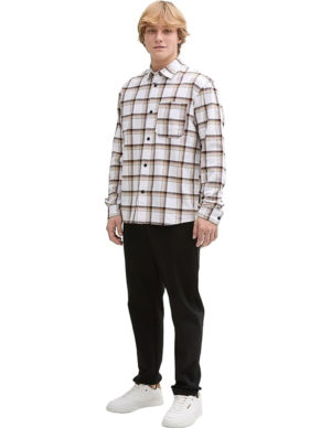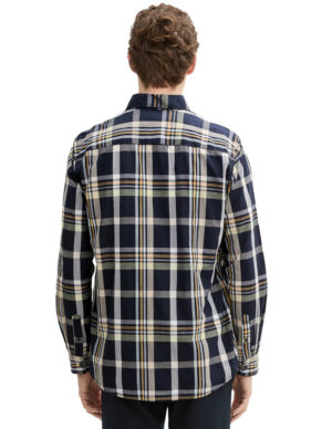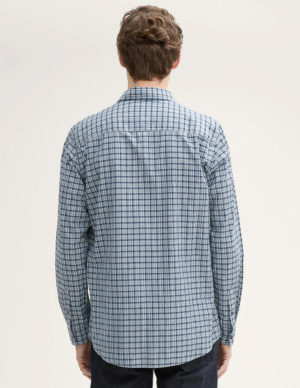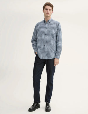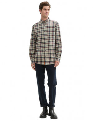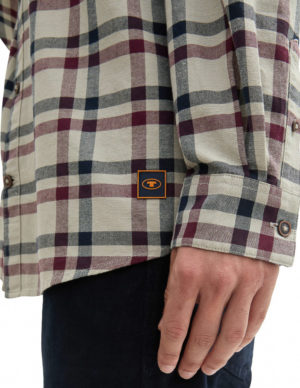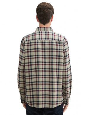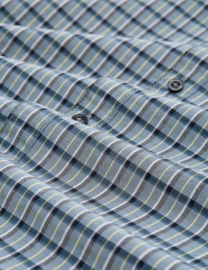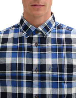 MСорочка в клітинку із бавовняної тканини. Комір з куточками, перед класичний із застібкою на ґудзики. Довгі рукава з манжетами на ґудзиках, одна нагрудна кишеня