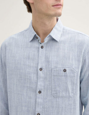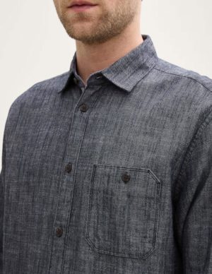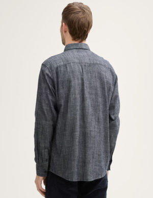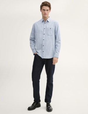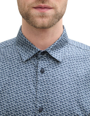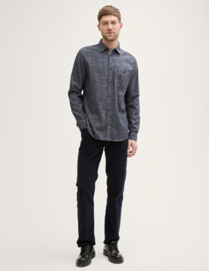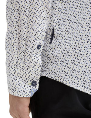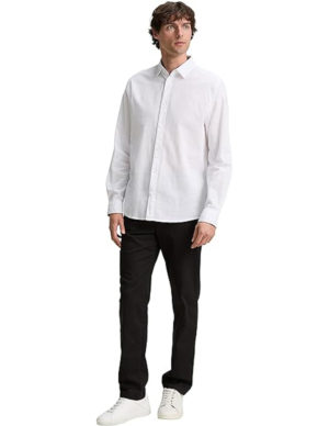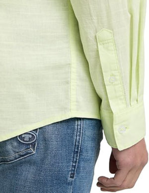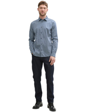 M LСорочка із бавовняної тканини. Комір з куточками, перед класичний із застібкою на ґудзики. Довгі рукава з манжетами на ґудзиках