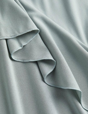 S MСукня до литок з м’якого трикотажу з V-подібним вирізом горловини та регульованими бретелями-спагеті. Широкий діагональний волан спереду та розріз з одного боку подолу