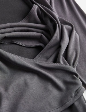 SПриталена сукня для годування з м’якого трикотажу з V-подібним вирізом горловини та довгими рукавами. Вшитий запах спереду та практичний внутрішній верх для легшого годування