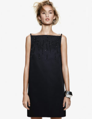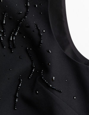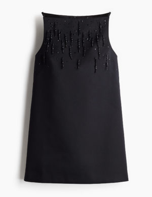 XS S M L XL XXLМіні-сукня без рукавів з саржі, прикрашена блискучими стразами та бісером спереду. А-силует з квадратним вирізом горловини, вузькими бретелями та прихованою блискавкою ззаду. Підкладка з тафти