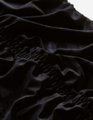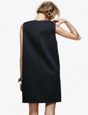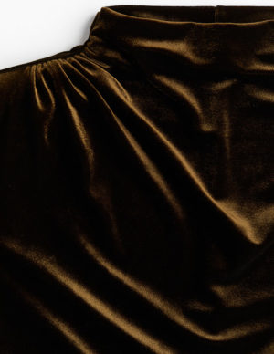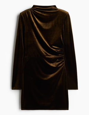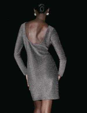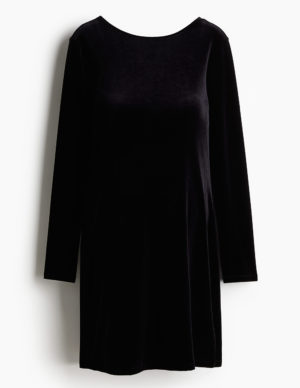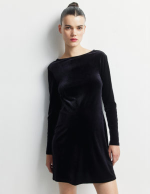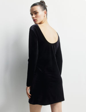 LКоротка, приталена сукня з м’якого велюру з глибоким круглим вирізом ззаду та довгими рукавами