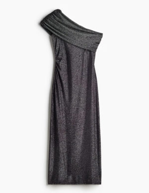 M L XLПриталена сукня з трикотажу з асиметричним вирізом на одне плече, широкою драпірованою складкою зверху та зібраним швом з одного боку талії для привабливого силуету