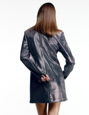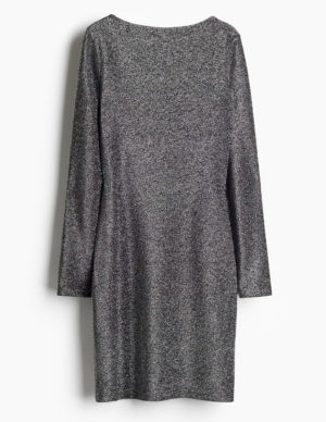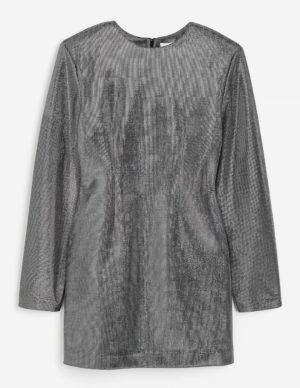 XS S M LКоротка сукня з блискучого трикотажу. Круглий виріз горловини, формуючі виточки спереду та ззаду для чіткого силуету, а також прихована блискавка ззаду. Плечові накладки та довгі рукави. На підкладці