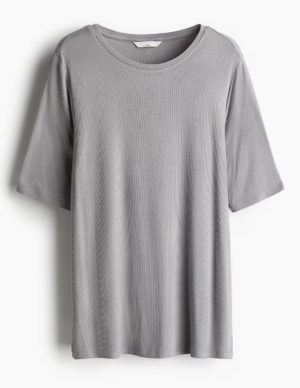 S M XLФутболка для годування з ребристого віскозного трикотажу з практичною функцією годування. Круглий виріз горловини, рукави до ліктя та бічні розрізи по низу. Двошаровий дизайн допомагає запобігти втраті тепла та полегшує грудне вигодовування. Цей топ можна носити як під час вагітності, так і після неї