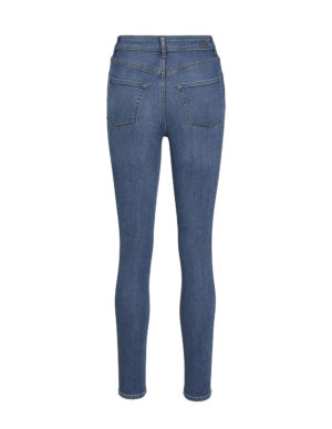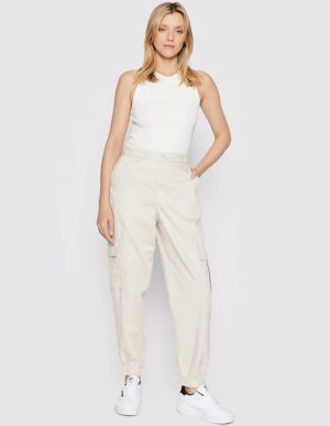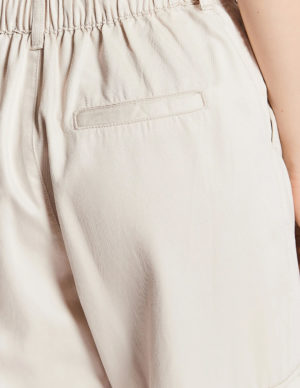 SБрюки з середньою посадкою талії, еластичний пояс ззаду. Спереду дві прорізні кишені та одна накладна кишеня ззаду. Застібається на блискавку та ґудзик спереду