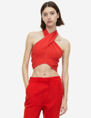 M L XLОблягаюча майка з ребристого трикотажу. Надзвичайно вузький крій спереду та комір-халтер з вузькими зав’язками ззаду на горловині