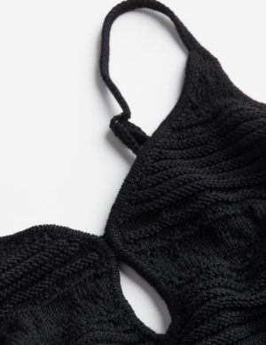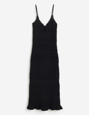 XSПриталена сукня без рукавів завдовжки до литок з фактурної в’язаної тканини з ефектом в’язання гачком. Вузькі регульовані бретелі та V-подібний виріз горловини з отвором у щілину спереду. Ніжно оздоблений поділ