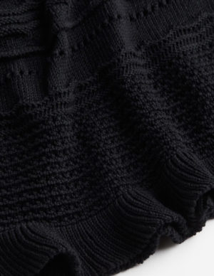 M XXLПриталена сукня без рукавів завдовжки до литок з фактурного плетіння. Широкі бретелі, глибокий V-подібний виріз горловини та діагональний волан спереду та ззаду. Асиметричний поділ. Без підкладки