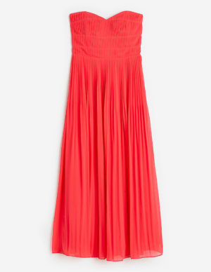 XSДовга сукня-бандо зі складками з прозорого шифону. Ліф корсетного фасону з вирізом у формі серця, прихованою силіконовою обробкою зверху та кісточками для додання форми та підтримки. Прихована блискавка збоку та розкльошена спідниця. На підкладці