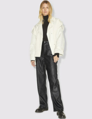 XS S L XLДжинсівка оверсайз із бавовняного деніму з коміром, застібається на металеві ґудзики. Спущена лінія плечового шва, розрізні рукави та манжети на ґудзиках. Спереду накладні та прорізні кишені