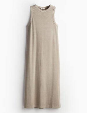XS S M LПриталена сукня з ребристого трикотажу завдовжки до литок з ребристою обробкою по вирізу та проймам