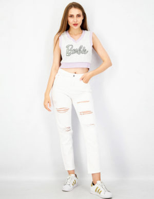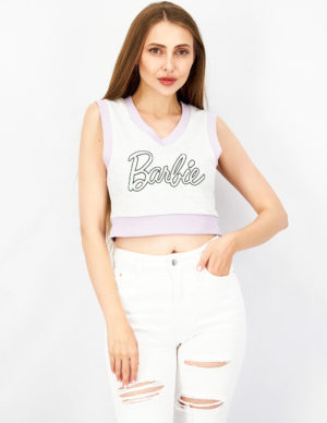 XXS XS S M LУкорочений жилет з написом, V-подібний виріз горловини, окантовка в рубчик по краях